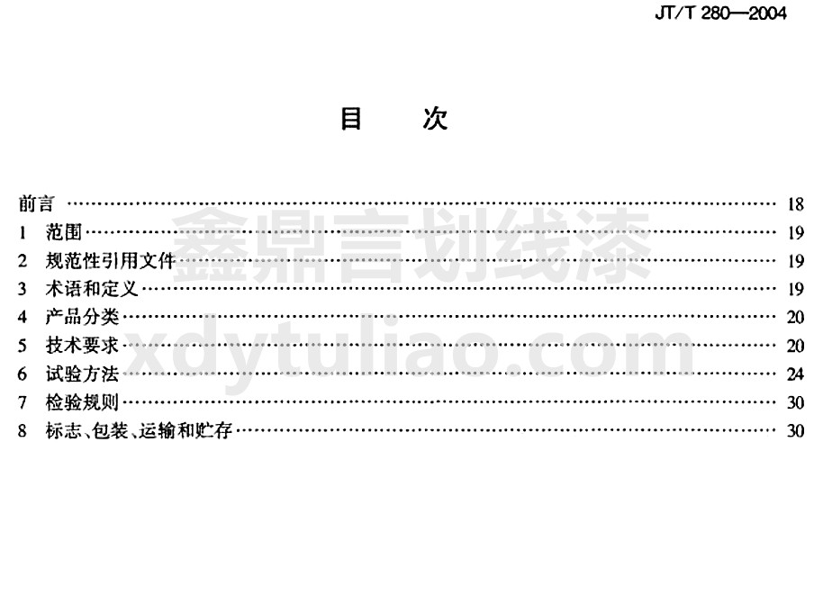 JT/T 280-2004路面標線涂料標準是小編照搬JT/T 280-2004《路面標線涂料》紙質版內容,大家可以放心參考。更多防腐涂料執行國家和行業標準等防腐涂料相關信息可以參與網站:www.derdoor.com