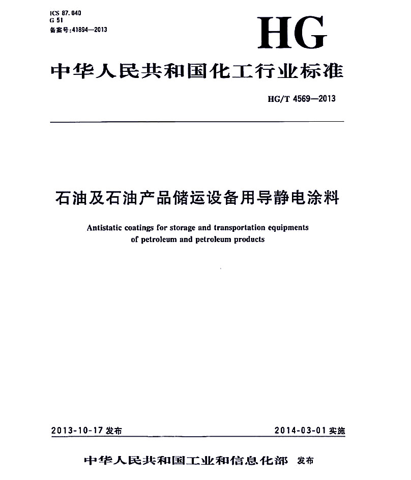 HG/T 4569-2013石油及石油產品儲運設備用導靜電涂料標準